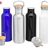 Ø 7,3 x 24 cm. Capacidad 750 ml. Aluminio. Tapa de acero con manija metálica rebatible y detalles en bambú. Anillo de silicona antiderrame. Presentación en caja de regalo Kraft