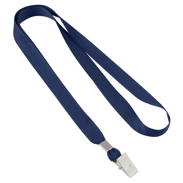 Lanyard Porta-Credencial clásico de polyester liso de 1.5 cm de ancho para sublimación, con terminal pinza metálica.